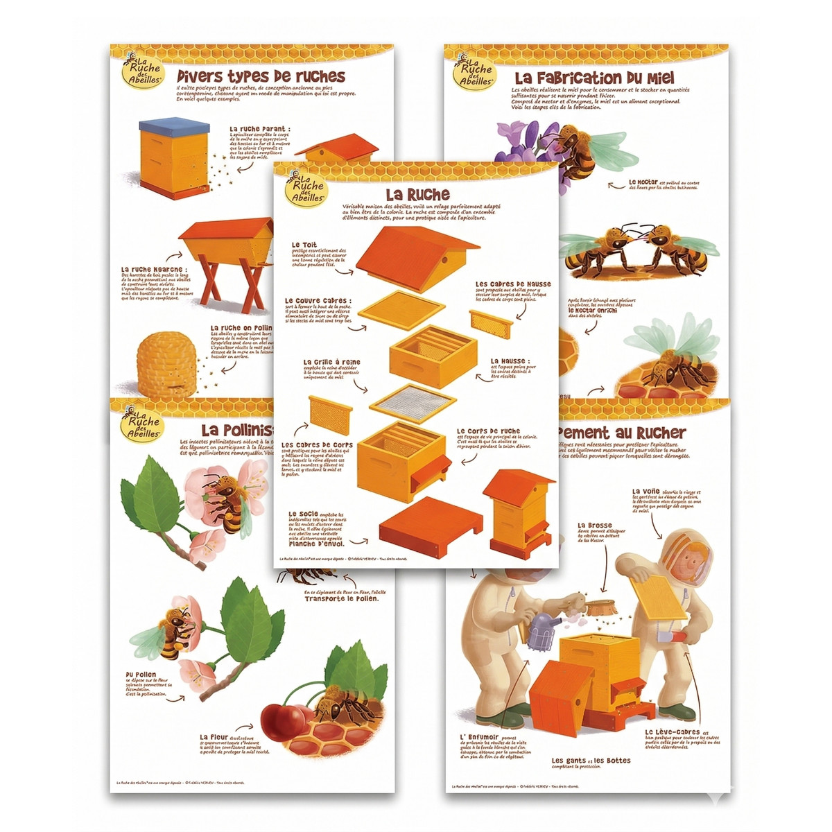 - ✿ Collection complète de 5 thèmes illustrés couvrant tous les aspects du rucher.