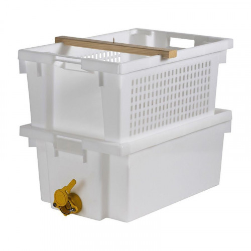 Grâce à ce bac à désoperculer grand modèle, la désoperculation des cadres de ruche devient une opération facile et pédagogique : format emboîtable et transportable facilement, traverse en bois pour poser le cadre, double bac qui filtre la cire, robinet pour récupérer le miel.