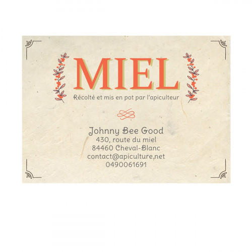 Attention : envoyez nous rapidement un mail à l'adresse graphiste@apiculture.net en précisant le numéro de commande pour indiquer le nom, l'adresse, et le modèle souhaités (Acacia, Lavandes, Tilleul, etc...)